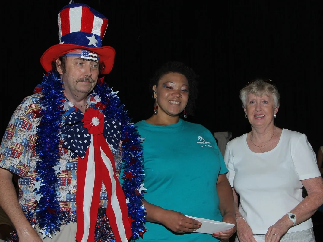 Toss together the first 4 ingredients. Top with the shrimp, peaches, peppers, and blueberries. Sprinkle the almonds on top.